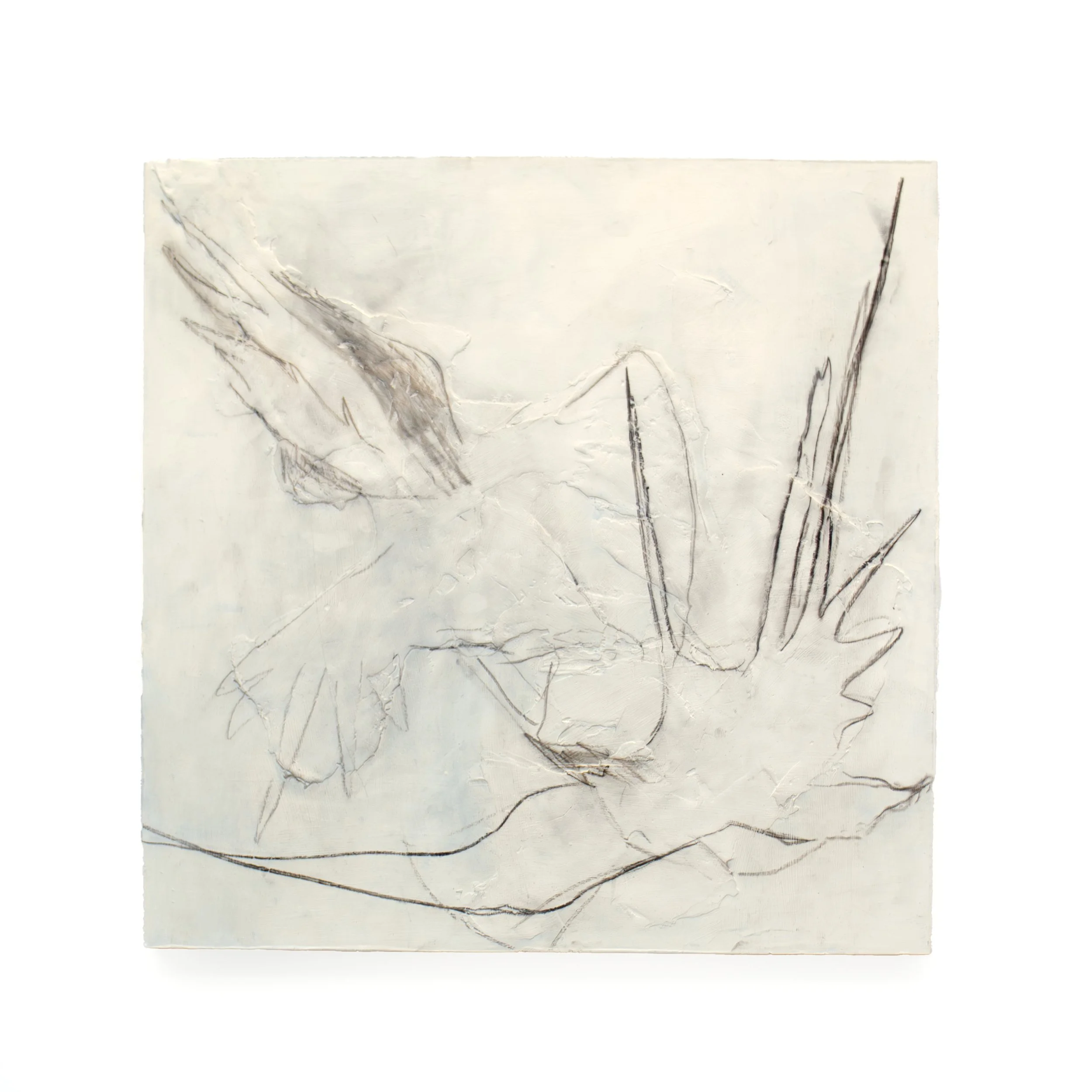 torque, 2023, 48” x 48”, oil, charcoal, and joint compound on panel